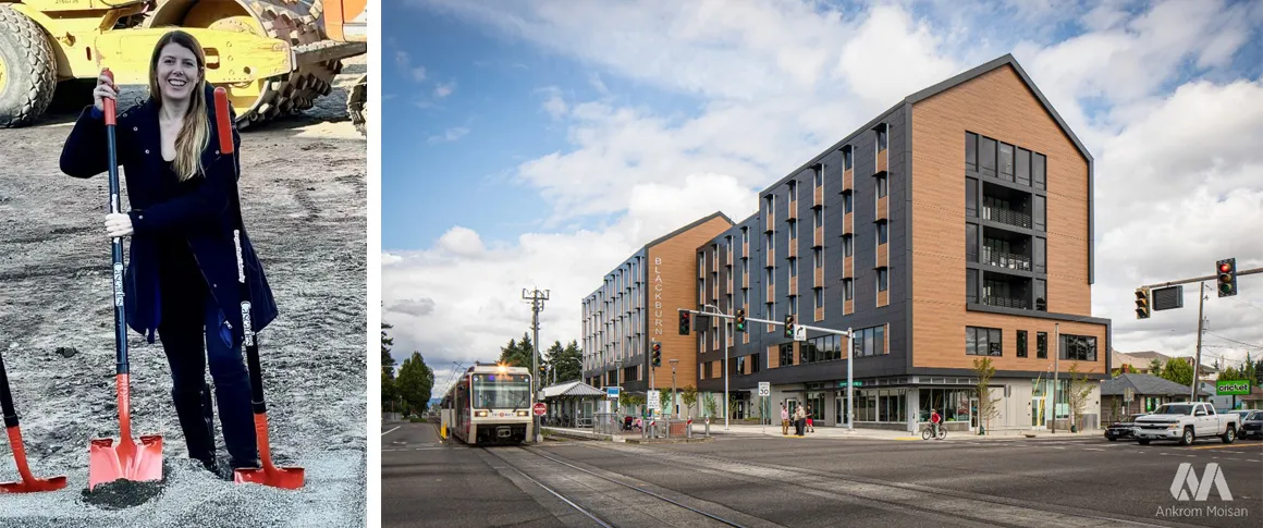 The first is the Blackburn Center for Central City Concern (pictured above), which I worked on with Ankrom Moisan Architects, the first firm I worked for in the U.S. The project is a one-stop shop for people who are struggling with addiction and/or houselessness. The project includes a clinic, addiction and mental health counseling, and transitional housing to assist people in their return to independent and healthy living. The project is certified Earth Advantage Platinum and won an Earth Advantage green builder award as well as an AIA/AAH Healthcare Design Award.