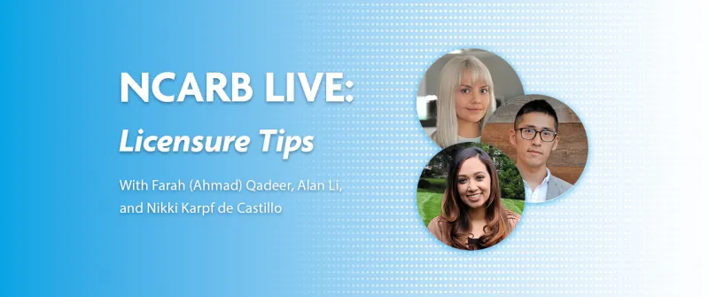 Do you have questions or need guidance on your journey to licensure? Are you interested in hearing from recently licensed architects about their experiences becoming licensed? Watch a recording of our live webinar featuring recently licensed architects as they share practical licensure tips and tools, as well as answer any questions candidates had about overcoming obstacles on the path to licensure.